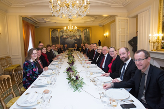 À l’occasion du 55ème anniversaire du Traité de l’Élysée, le groupe interparlementaire d’amitié France-Allemagne, à l’initiative de sa Présidente, Mme Catherine Troendlé, Sénateur du Haut-Rhin, a reçu Mme Béatrice Angrand, Secrétaire générale de l’Office franco-allemand pour la Jeunesse (OFAJ), et M. David Capitant, Président de l’Université franco-allemande (UFA), pour un déjeuner de travail sur la thématique des initiatives franco-allemandes pour la jeunesse, en présence de M. Pascal Hector, Ministre-plénipotentiaire de l’Ambassade d’Allemagne.