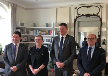 Le 9 juillet 2020, Son Excellence Monsieur Michael Starbaek Christensen, ambassadeur du Danemark en France, a reçu à la Résidence une délégation du groupe d’amitié France – Europe du Nord.  Cette délégation était composée de M. André Gattolin (LaREM - Hauts-de-Seine), président, de Mme Angèle Préville (Socialiste et républicain – Lot), présidente déléguée pour la Suède et de M. Olivier Cadic (Union Centriste – Français établis hors de France).
