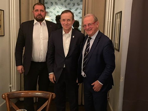 De g. à dr., M. Aleksander Pociej, président du groupe d'amitié Pologne-France du Sénat Polonais, M. Tomasz Grodzki, Maréchal du Sénat de Pologne, et M. Jean-Pierre Leleux, président du groupe d'amitié France-Pologne