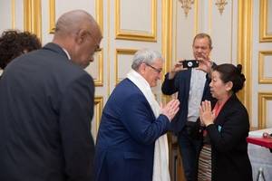 | La délégation de parlementaires tibétains et les membres du groupe | Le Président Michel Raison et Mme Dolma Tsering Teykhang |