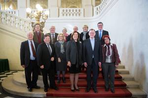 Mme Catherine Troendlé, Présidente du groupe interparlementaire d’amitié France-Allemagne, Mmes Annie David, Claudine Lepage, Colette Mélot, Vice-présidentes du groupe, MM. Claude Kern et Philippe Nachbar, Secrétaires du groupe, et Mme Pascale Gruny, MM. Guy-Dominique Kennel, Yves Daudigny, Gérard Bailly et René Danesi, ont reçu le mardi 8 novembre 2016 au Sénat M. Bodo Ramelow, Ministre-Président de Thuringe (Allemagne), membre du Bundesrat, accompagné de S.E. M. Nikolaus Meyer-Landrut, Ambassadeur d’Allemagne en France.
