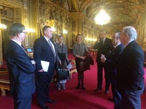 Les membres du groupe d'amitié France-Biélorussie avec M. Charles Guéné, Président du groupe et M. Oleg Kravchenko, Vice-ministre des Affaires étrangères de Biélorussie