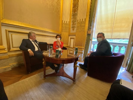 Mme Elisso BOLKVADZE a également rappelé les défis géopolitiques que rencontre son pays, proche voisin géographique de la Russie et de la Turquie, mais aussi de l’Arménie et de l’Azerbaïdjan qui se sont affrontés au Haut-Karabakh en 2020. Elle a également manifesté son souhait de promouvoir l’art et la culture géorgienne à l’étranger, encore trop méconnus selon elle, et évoqué les perspectives d’adhésion de la Géorgie à l’Union européenne. A été également évoquée, la question migratoire.