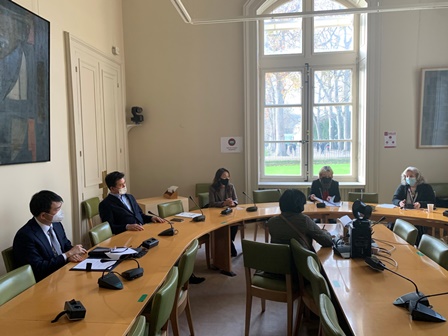 Le jeudi 9 décembre 2021, sous la présidence de Mme Catherine DUMAS (Les Républicains – Paris), le groupe d’amitié France-Corée du Sud a reçu une délégation de la commission des Affaires étrangères de l’Assemblée nationale de Corée du Sud composée de Mme LEE Jae jung, députée, vice-présidente de la commission, et M. KIM Tae-ho, membre de la commission, en présence de S.E. M. YOO Dae-jong, Ambassadeur de la République de Corée en France. Étaient également présents Mme Vivette LOPEZ (LR – Gard) et M. Olivier JACQUIN (Socialiste, Écologiste et Républicain – Meurthe-et-Moselle).