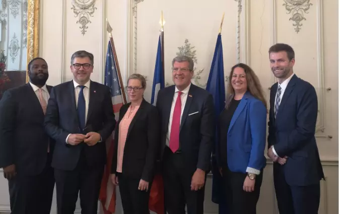 La délégation était composée de Mmes Katie BROWN, Directrice de la législation du Sénat et Conseillère principale de la Sénatrice Susan COLLINS (Républicaine – élue de l’État du Maine), et Amanda THORPE, Conseillère en matière de sécurité nationale du sénateur Peter F. WELCH (Démocrate – élu de l’État du Vermont), et de MM. Brandon CASEY, Directeur du cabinet démocrate de la commission des voies et moyens de la Chambre des représentants, et Michael CALLESEN, membre du personnel de la majorité à la commission des Affaires étrangères de la Chambre des représentants.