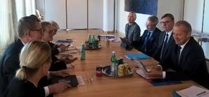 Le 23 octobre 2018, M. Jean-François Husson, président du groupe d’amitié France-Finlande du Sénat, s’est entretenu à l’ambassade de Finlande avec une délégation de la commission des Affaires étrangères du Parlement finlandais, l’Eduskunta. La délégation, conduite par M. Matti Vanhanen, président de la commission et ancien Premier ministre, représentait l’ensemble des partis siégeant au Parlement.