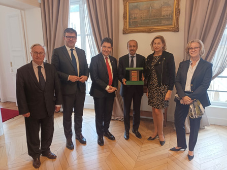 De gauche à droite : MM. Louis-Jean de Nicolay, Fabien Genet et Olivier Cadic, S.E. M. Fahad Al Ruwaily et Mmes Nathalie Delattre et Nadine Bellurot