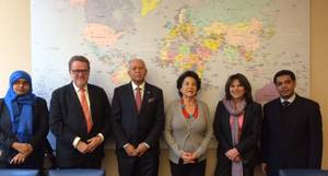 S.E. M. Reyad Yassim ABDULLAH entouré par M. Vincent EBLÉ (à droite), Mme Christiane KAMMERMANN et Mme Nathalie GOULET (à gauche)