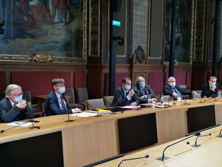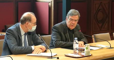 M. Dominique de LEGGE a ensuite invité Mgr Aupetit à s’exprimer sur trois sujets, les suites du rapport de la Commission indépendante sur les abus sexuels dans l’Église, la CIASE (1), et la dernière assemblée des évêques à Lourdes, sa vision de la société dans le cadre de la pandémie notamment après la publication de sa lettre pastorale sur la fraternité (2), et, enfin, sur l’avancement des travaux à Notre-Dame de Paris, rappelant que lors de sa visite au Vatican, le groupe d’amitié avait offert au Pape un tronçon de chêne béni en vue de la reconstruction de la charpente (3).