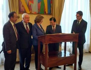 M. Trịnh Dình Dũng, vice Premier ministre de la République socialiste du Vietnam entouré de M. Philippe Dallier (à droite) et de Mme Catherine Deroche et Robert Del Picchia (à gauche)