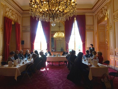 En introduction, Mme Christiane KAMMERMANN a d’abord présenté S. E. M. Makram QUEISI, qui a succédé le 7 octobre 2013 à Mme Dina KAWAR à la tête de l’ambassade de Jordanie en France. Ancien Ambassadeur en Autriche, en République Tchèque, en Hongrie, en Slovaquie et Représentant permanent auprès des organisations internationales à Vienne, il a assuré d’importantes responsabilités auprès de la Cour royale hachémite. Elle a également salué la présence de M. Ludovic POUILLE, Directeur-adjoint à la direction « Afrique du nord et Moyen-Orient » du ministère des Affaires étrangères et du développement international.