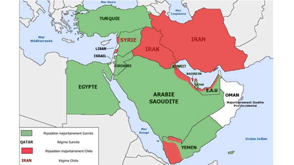 Face aux sunnites, les chiites menés par l’Iran, proviennent d’une division au sein de l’islam dont l’origine remonte à l’immédiate succession de Mahomet. Elle est le produit de l’histoire mais atteint aujourd’hui une dimension paroxystique entre l’Arabie Saoudite et l’Iran pour l’hégémonie au Moyen-Orient.