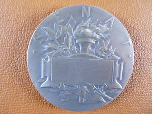 Médaille d'identité du Sénat de la Troisième République, 1924 (argent). A/ REPUBLIQUE FRANCAISE. Buste de la République, de profil à droite, coiffée d'un bonnet phrygien et couronné de laurier. R/ SENAT. Une banderole, sur laquelle on lit : 1924, s'enroule autour d'une branche d'olivier et d'un flambeau allumé, symbolisant la Lumière. Devant, un cartouche destiné à recevoir le nom du sénateur (Di Stefano, p. 88). 1924.