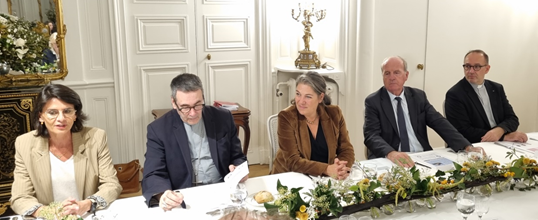 Le mardi 18 octobre 2022, le groupe d’amitié France-Saint-Siège, présidé par M.Dominique de LEGGE (Les Républicains Ille-et-Vilaine), s’est entretenu avec Mme Anne VENTALON (App. LR – Ardèche) et M. Pierre OUZOULIAS (Communiste républicain citoyen et écologiste – Hauts-de-Seine), auteurs d’un rapport sur l’état du patrimoine religieux au nom de la commission des Affaires culturelles, ainsi que Mgr Jacques HABERT, évêque de Bayeux et Lisieux, Mgr Hugues de WOILLEMONT, secrétaire général de la Conférence des évêques de France (CEF), le P. Gautier MORNAS, directeur du département d’art sacré de la CEF, et Mme Charlotte CHAMBOUNAUD, chargée des relations institutionnelles de la CEF.