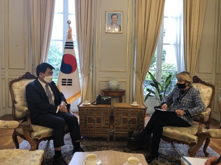 Le 5 mars 2021, à l’Ambassade de Corée du Sud, Mme Catherine DUMAS, présidente, a rencontré S. E. M. Dae Jong YOO, Ambassadeur de la République de Corée, qui a pris ses fonctions à la fin de l’année 2020.