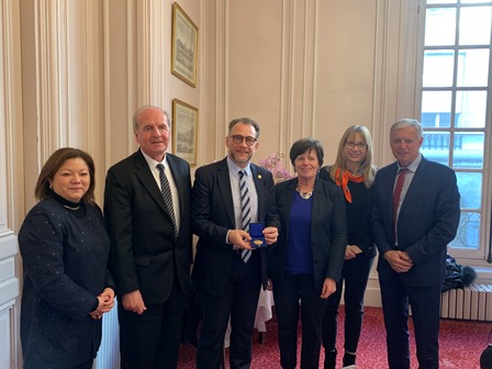 De gauche à droite : Mme Julissa HENGSTENBERG, Ministre Conseiller, M. Daniel LAURENT, S. Exc. M. Francisco GROSS, Mme Élisabeth LAMURE,