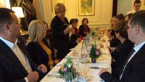 Au Palais du Luxembourg, la délégation a d’abord participé à un déjeuner de travail en présence Mme Josette DURRIEU, de  Mmes BLONDIN Maryvonne et Danielle MICHEL,  Vice-Présidentes et  Mme Gisèle JOURDA, Secrétaire du groupe d’amitié.