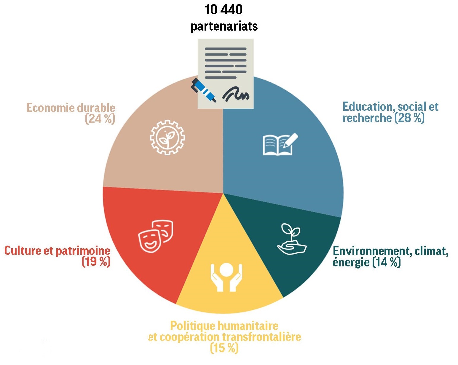 S’agissant des thématiques, sur les 10 440 partenariats :