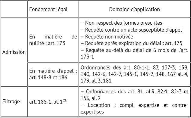 * 64 A savoir : décision refusant la modification d'une OCE, Ordonnance statuant sur les demandes d'actes d'investigation par les parties, ordonnances statuant sur les modalités de la détention, la délivrance de copie, contentieux de la co-saisine, autre ordonnance du JI.