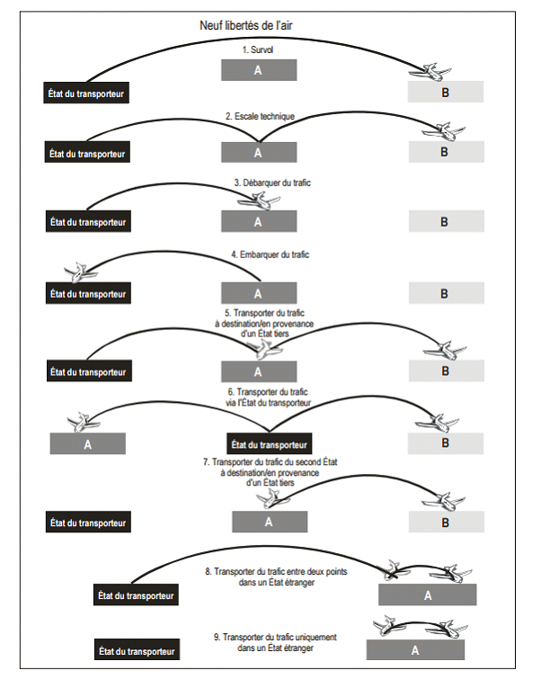 Schéma rappelant les neuf libertés de l'air