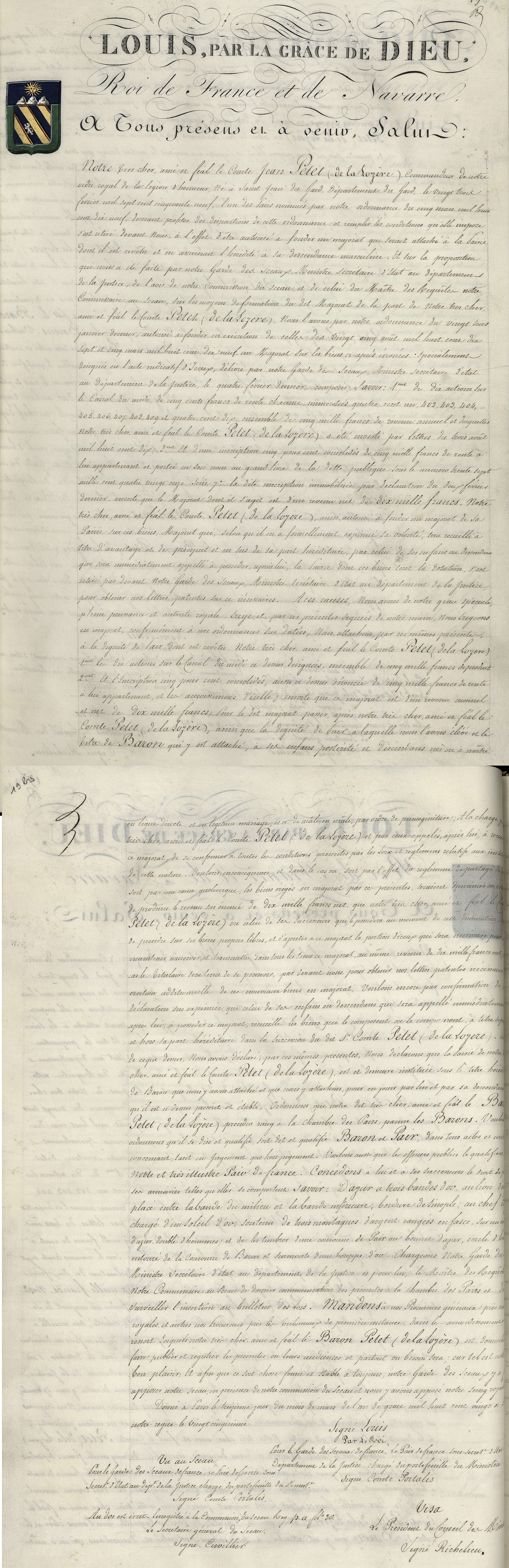 - Lettres patentes (institution d'un titre de Pairie) extraites du "Livre de la Pairie" [Archives nationales CC//961]