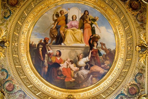 Au plafond, un tableau allégorique, destiné au centre du plafond, est commandé au peintre Henri Decaisne.