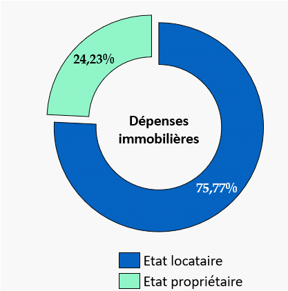 La dotation de l'action 06 finance pour un peu plus de trois quarts (75,77 %) les dépenses de l'État en tant que locataire et pour près d'un quart, celles de l'État propriétaire (24,23 %).