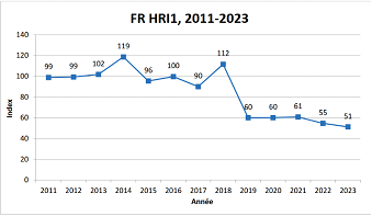 En effet, dans le cadre des différents plans Écophyto, le ministère de l'agriculture exerce déjà un important suivi, notamment par l'indicateur dit « HRI 1 » (indicateur de risque harmonisé 1), qui « correspond à la somme des quantités de substances actives vendues en année n, pondérée par les coefficients liés à leur classification, définie de façon à refléter le risque associé aux substances concernées, et rapportée à la période de référence (2011-2013) » (source : Masa). L'évolution à la baisse de cet indicateur européen souligne à ce titre bien les efforts considérables de la ferme France en matière de réduction de l'usage des PPP, et particulièrement des plus dangereux.