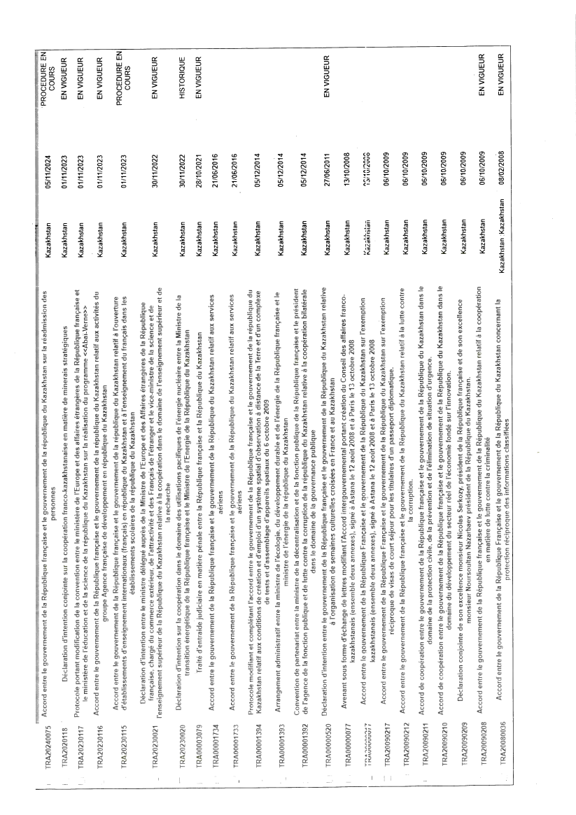 Liste des conventions bilatérales entre la France et le Kazakhstan