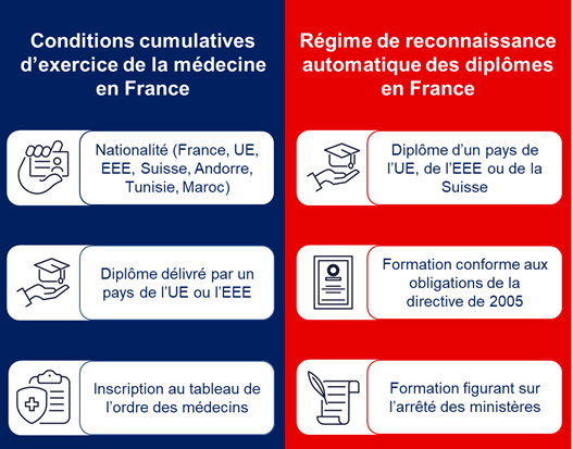 Pour exercer en France comme médecin, trois conditions cumulatives sont exigées :