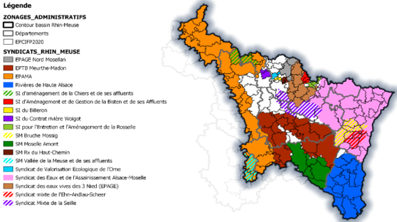* 44 On peut citer les Bouches du Rhône, au sein du syndicat mixte interrégional d'aménagement des digues du delta du Rhône et de la mer, l'Isère au sein du syndicat mixte des Bassins Hydrauliques de l'Isère, la Savoie au sein du syndicat mixte de l'Isère et de l'Arc en Combe de Savoie, les Hauts de Seine, la Seine-Saint-Denis et le Val-de-Marne au sein de l'EPTB Seine Grands Lacs et la Loire-Atlantique, le Maine-et-Loire, l'Indre-et-Loire, le Loir-et-Cher, le Loiret, le Cher, la Nièvre, la Saône-et-Loire, l'Allier, la Creuse, la Haute-Vienne, le Puy-de-Dôme, la Loire, la Haute-Loire, la Lozère et l'Ardèche au sein de l'EPTB Établissement Public Loire.