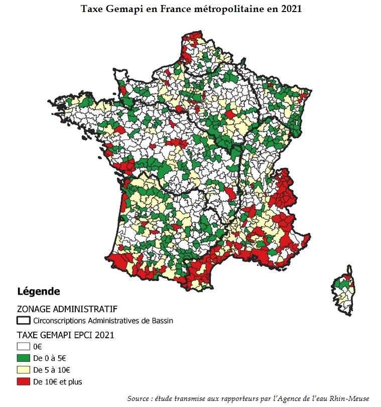 Les territoires sont inégalement confrontés au risque d'inondations. Dans le bassin Rhône-Méditerranée-Corse, particulièrement exposé, le « taux » de la taxe Gemapi est ainsi supérieur au reste du territoire. Les inégalités face aux aléas naturels se doublent donc d'inégalités en matière fiscale.