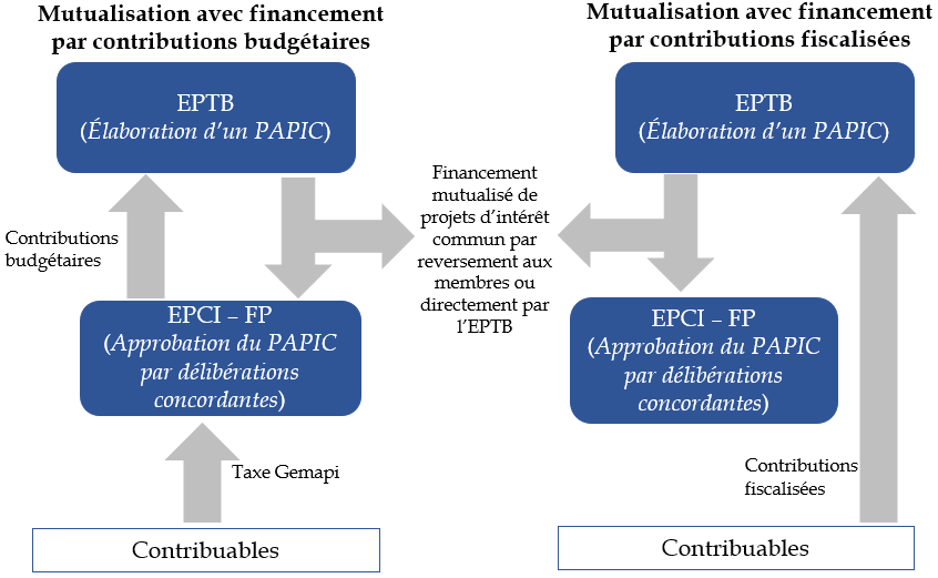 - pour ne pas nécessairement faire reposer le financement de ces plans sur la taxe GEMAPI, qui est facultative, il est proposé de recourir aux contributions de droit commun des membres des EPTB, ce qui permet aux élus d'organiser comme ils le souhaitent la solidarité de bassin ;