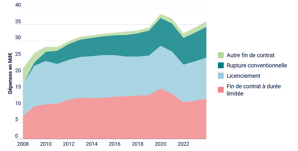 Les données communiquées par l'Unédic soulignent qu'en 2024, les allocataires ayant connu le chômage à la suite d'une rupture conventionnelle représentaient 19 % des nouveaux assurés au chômage. Dans le même temps, ils conduisent à 26 % des dépenses totales d'allocation - soit 9,4 milliards d'euros. Cette surreprésentation s'explique principalement par le fait que les ruptures conventionnelles sont particulièrement plébiscitées par les cadres, dont les revenus - et donc l'allocation de remplacement - sont plus élevés que la moyenne.