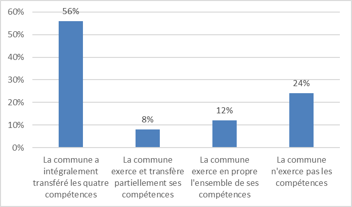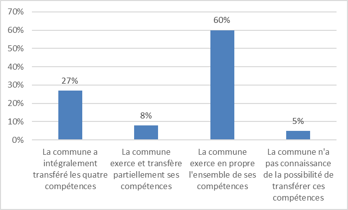 Près de 64 % des communes de moins de 3 500 habitants ont transféré une ou plusieurs compétences du service public de la petite enfance à un établissement public de coopération intercommunale ou à un syndicat mixte. En revanche, seules 35 % des communes de plus de 3 500 habitants déclarent avoir procédé à un tel transfert1(*).