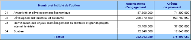 - l 'action 4, « Programme exceptionnel d'investissement en faveur de la Corse », retrace les crédits destinés au financement d u d éveloppement économique de la Corse par une remise à niveau des équipements publics structurants, infrastructures de base et services collectifs ;