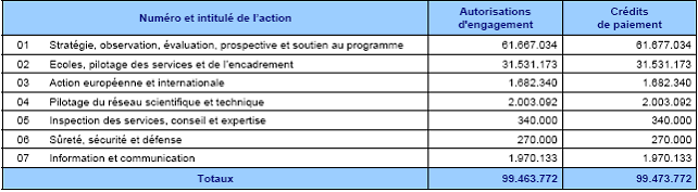 - le programme 222, « Stratégie en matière d'équipement », composé de 7 actions ;