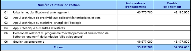 - le programme 113, « Aménagement, urbanisme et ingénierie publique », composé de 6 actions ;