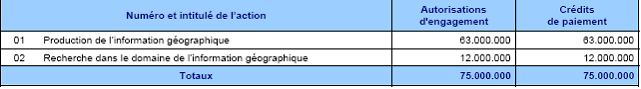 - le programme 159, « Information géographique et cartographique », composé de 2 actions ;