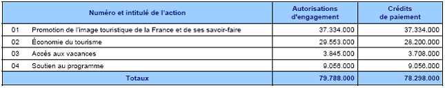 - le programme 223, « Tourisme », composé de 4 actions ;