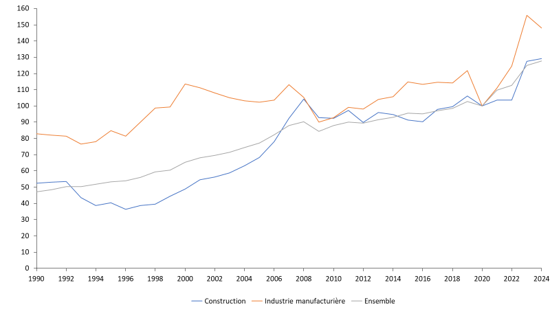 construction ont fortement progressé entre 2020 et 2024, principalement
