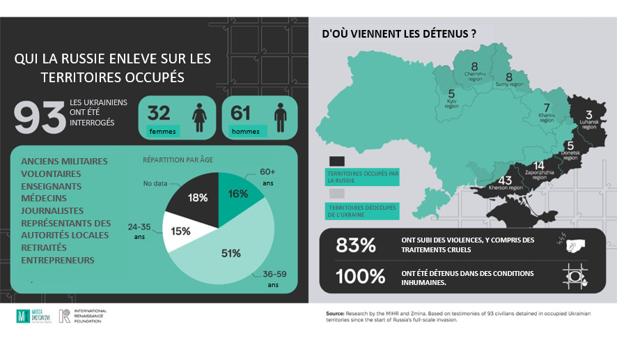Ces violations, qui sont systématiques, instaurent un climat de peur dans les territoires ukrainiens occupés et ont un impact très négatif sur la société en général. Lors d'échanges de prisonniers, on voit revenir des personnes qui ont perdu trente ou quarante kilos, qui sont en mauvaise santé, traumatisées, et qui, parfois, ne reconnaissent pas leurs proches, y compris leur mère ou leur femme.