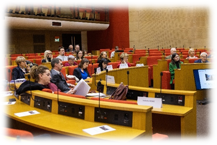 De gauche à droite : Mikola MSHABINSKI, Tetiana DOBKO, Iuliia HOCQUARD, Laure DARCOS, vice-présidente de la délégation, Jocelyne ANTOINE, Céline BARDET, Mélina HUET, Colombe BROSSEL, Nadia SOLLOGOUB, Dominique VÉRIEN, présidente de la délégation, Isabelle ROME, Hugh HAGAN, Olivia RICHARD, Annick BILLON, vice-présidente de la délégation, Nicolas LIGNEUL, Baptiste CHAPUIS, Lyubov SMACHYLO |