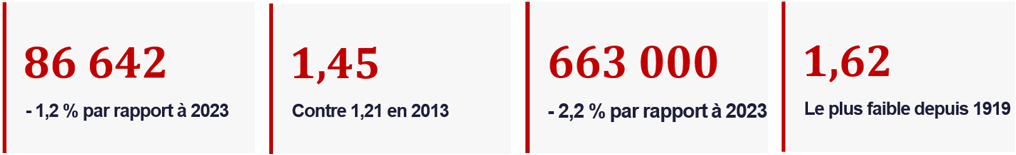 Nombre de naissances vivantes et indice de fécondité en 2024
