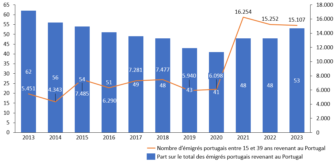 Enfin, au cours de notre déplacement, un autre enjeu majeur auquel doit faire face la société portugaise et qui pèse sur son avenir démographique est apparu : il s'agit du départ massif de ses jeunes depuis plusieurs années. On estime aujourd'hui que 30 % des jeunes nés au Portugal - environ 850 000 personnes âgées de 15 à 39 ans - résident actuellement en dehors du pays. C'est un défi considérable pour le pays, dont une partie de la jeunesse la plus qualifiée part en quête de salaires plus élevés ailleurs en Europe.