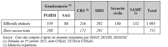 À la lumière du rapport de la Cour et des auditions qu'ils ont menées, les rapporteurs spéciaux constatent que, si les moyens humains mobilisés sont notables - bien que demeurant modestes à l'échelle des forces de sécurité intérieure et de sécurité civile -, le dispositif de secours en montagne a fait la preuve de son efficacité.