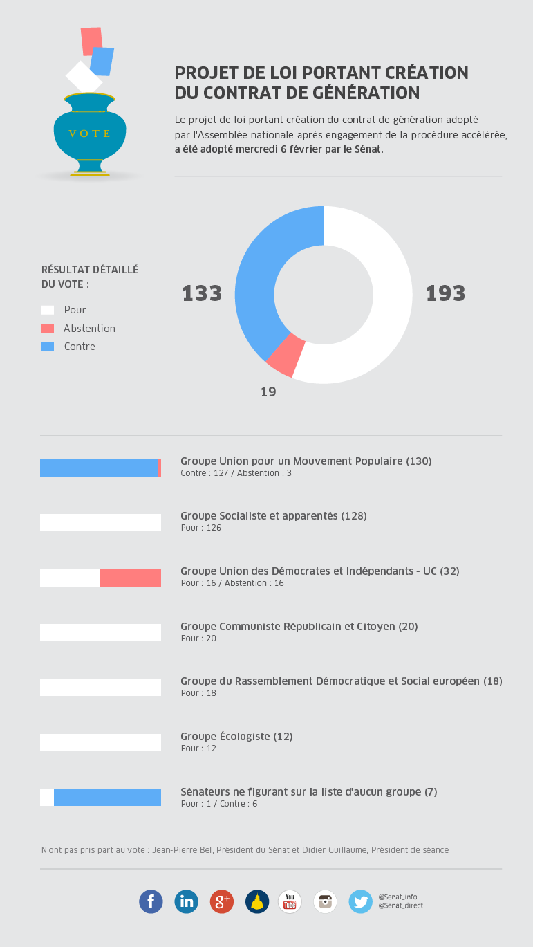 — Senat_direct (@Senat_Direct) 5 février 2013Dominique Watrin (@presse_crcsenat) : " Le groupe CRC votera en faveur de ce PJL sr le contrat de #génération " #directsenat