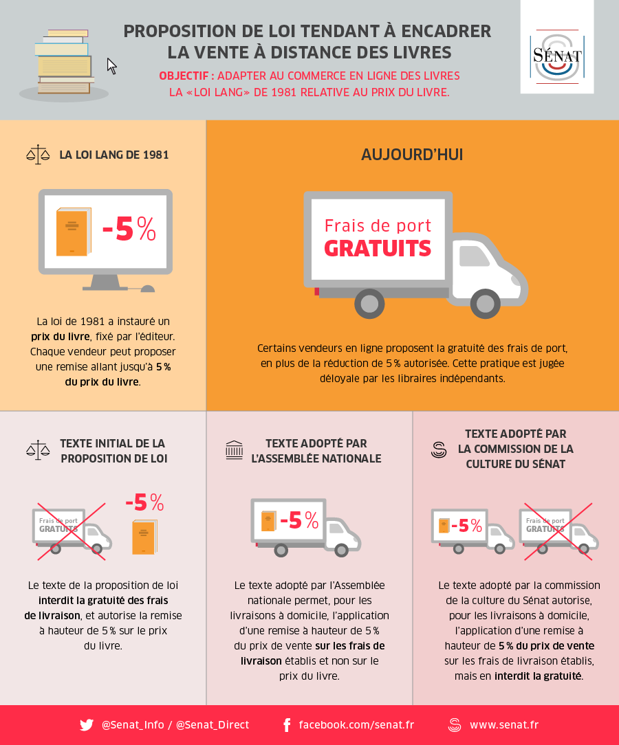 Mercredi 8 janvier, le Sénat a examiné la proposition de loi, adoptée par l'Assemblée nationale, tendant à encadrer les conditions de la vente à distance des livres.