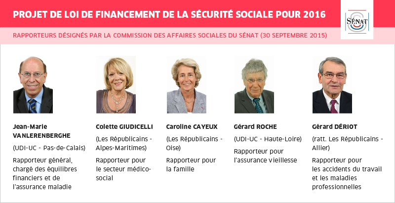 Mercredi 4 novembre, la commission des affaires sociales a examiné le rapport sur le projet de loi de financement de la sécurité sociale pour 2016 (Jean-Marie VANLERENBERGHE, rapporteur général en charge des équilibres financiers généraux et de l'assurance maladie, Colette GIUDICELLI, rapporteur pour le secteur médico-social, Caroline CAYEUX, rapporteur pour la famille, Gérard ROCHE, rapporteur pour l'assurance vieillesse, et Gérard DÉRIOT, rapporteur pour les accidents du travail et les maladies professionnelles).