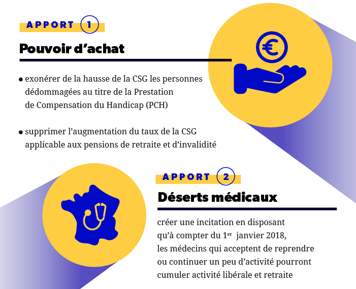 - supprimer l’augmentation de 1,7 point du taux de CSG applicable aux pensions de retraite et d’invalidité (art 7) ;